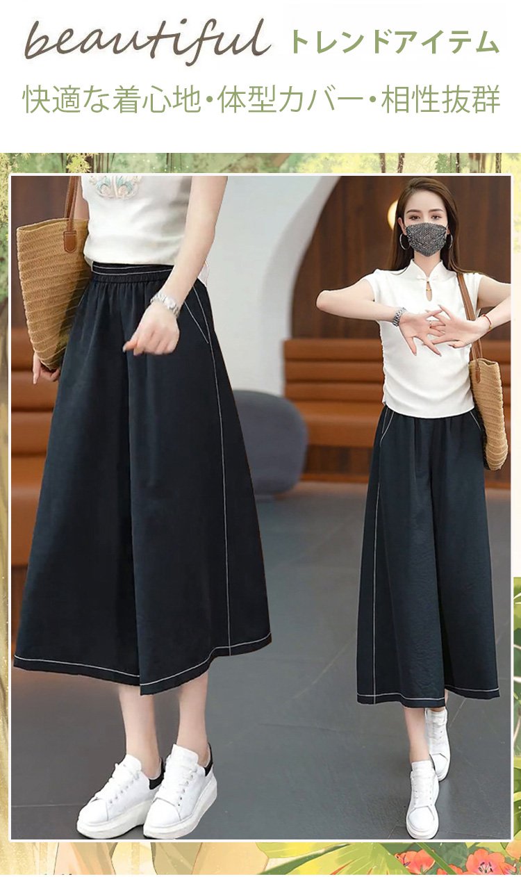 ドレープ感のある薄手スカート風パンツ